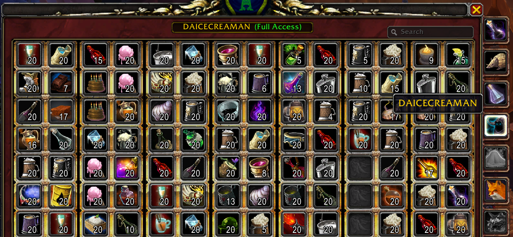 Side note: Check out my Guild Bank tab that I horde in-game alcohol (In case you didn’t believe me when I said I used to collect digital pets lmao). Maybe I’ll tell you about the Beer of the Month Club or my guild meetings some day ❤